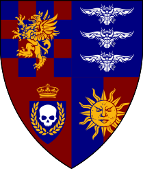De sable à une main senestre appaumée d'argent, au doigt annulaire cassé et saignant de gueules.