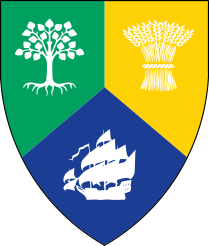 Coupé, au premier parti de gueules à une épée abaissée et une plume d'or et de sinople à une serpe et un mortier d'or, et au second de pourpre à deux couronnes versées, et brochant sur le tout: à un orphelinat d'or essoré d'azur mouvant de la pointe. Fondation en 1023 3 ans d'existence |