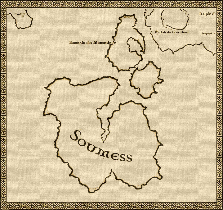 La région de Soumess est formée d’un archipel composé d’un très grand nombre d’îles. L’île de Soumess, véritable continent, est un mystère pour nombre de cartographes. Bien que ses côtes fussent cartographiées par plusieurs ateliers de cartographie, peu de rapports et de cartes existent concernant l’intérieur des Terres de Soumess.