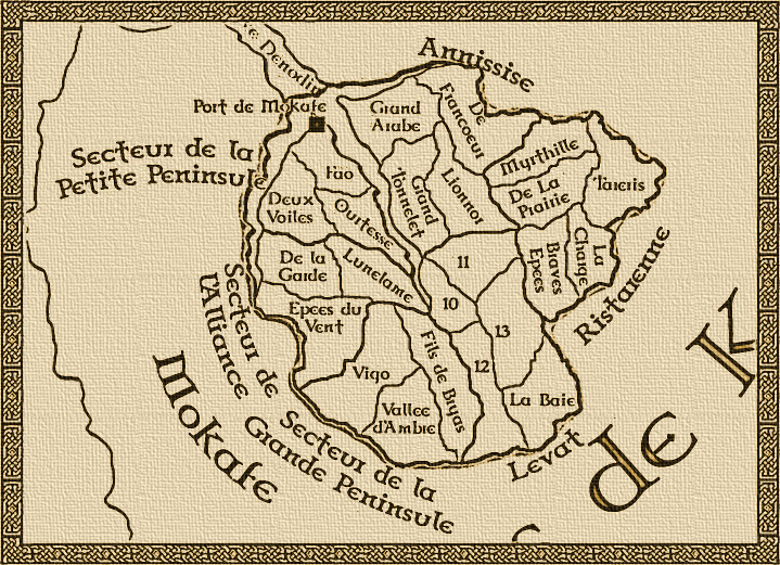 Le territoire de Mokafe s'étend sur une vaste étendue autour de la pointe du fleuve Dénodin. Ce territoire est pratiquement inhabité. Le peuple de Mokafe a depuis longtemps abandonné le centre de sa terre aride pour vivre le long du fleuve et y développer une cité portuaire.