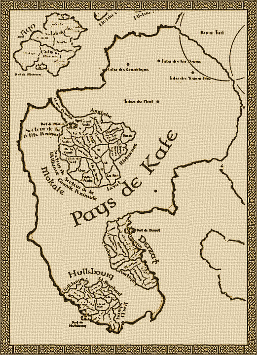 C’est en 1005, durant le Grand Conflit des Terres du Centre, que le premier Conseil du Pays de Kafe se tint en réunissant des représentants de toutes les cités. Tout de suite les discussions furent amicales, les premiers édits de région furent votés à l’unanimité et chaque représentant repartit pour sa Cité avec la conviction que le Pays de Kafe est dorénavant une région à part entière avec son peuple, ses politiques et ses valeurs propres.