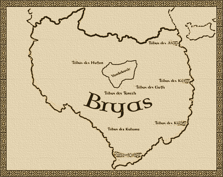 Le pays de Bryas est un vaste territoire situé à l’ouest des rives de Kintzheim et au nord des portes de Vigo. Ses frontières sud sont délimitées par la mer, alors que celles du nord se perdent dans les régions hostiles et peu connues des Terres d’Auquesse.