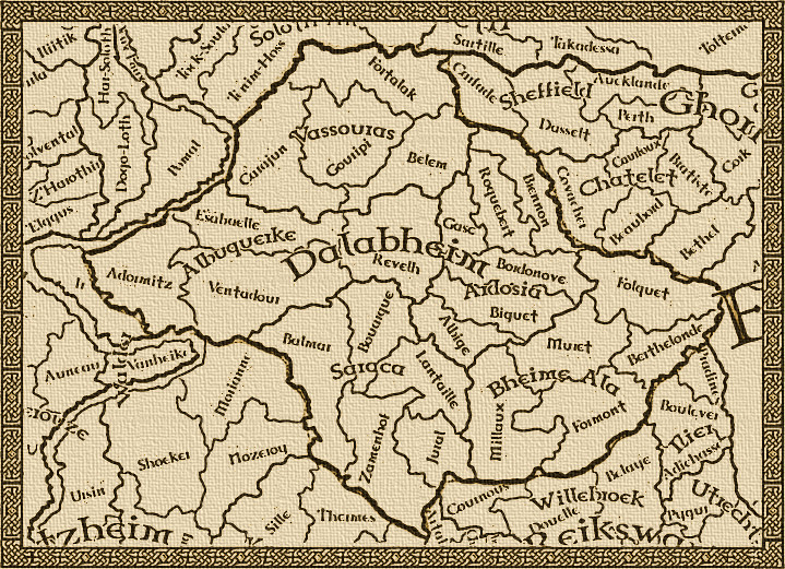 Le Seigneur Alabheim mort en l'an 999 de la première ère n'a pas laissé d'héritier. La province fut longuement déchirée par les conflits incessants entre de nombreuses guildes.