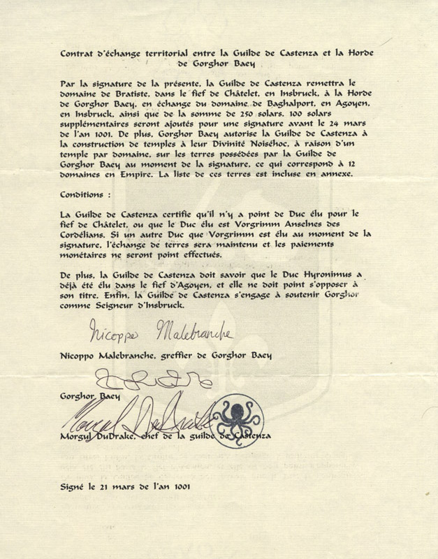 Contrat d'échange avec Castenza (1001)