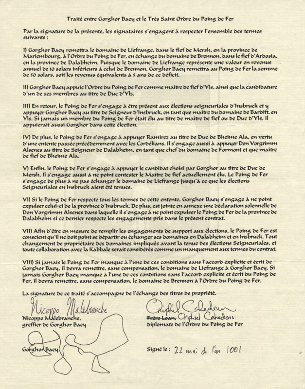 Approuvé par son Altesse Sérénissime Karl Von Shlaffenmark 1er
