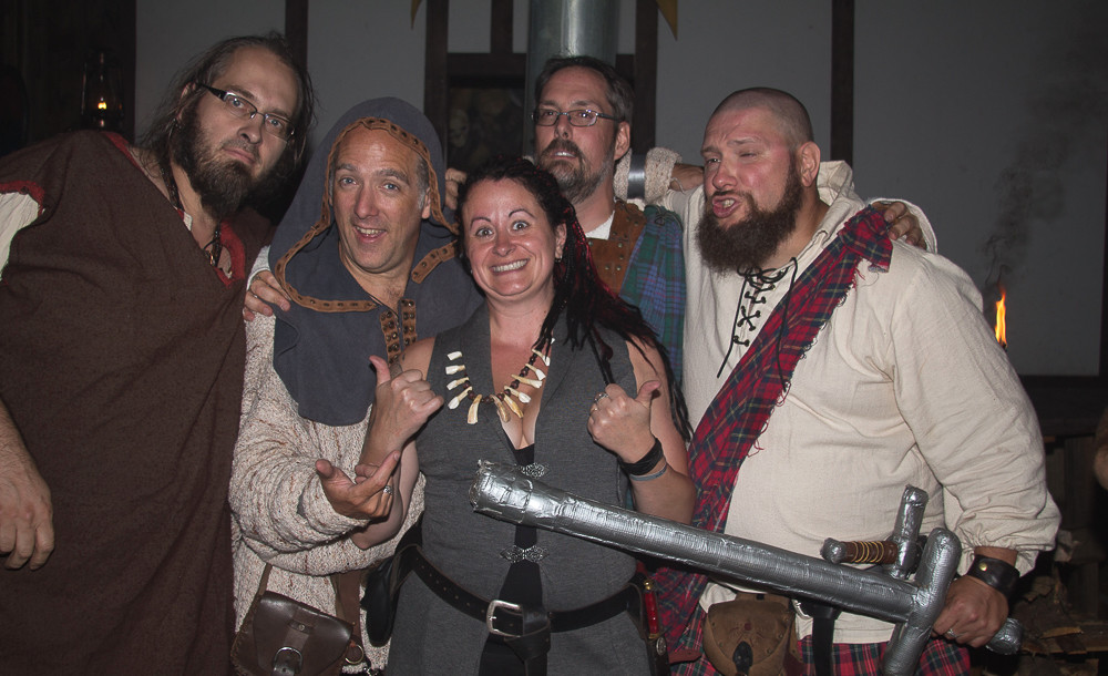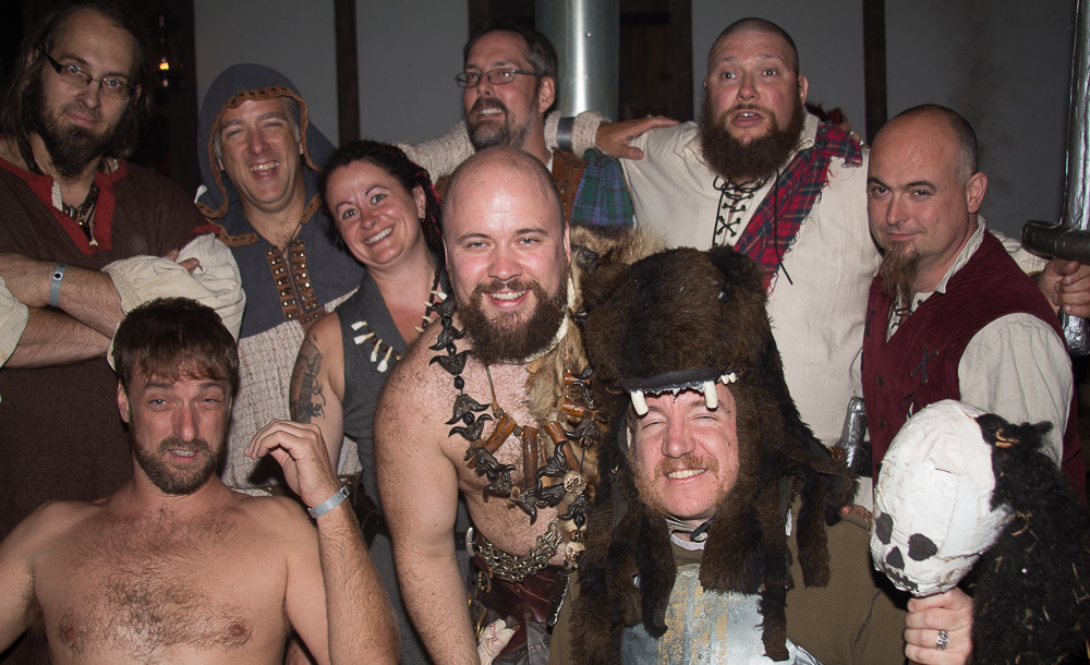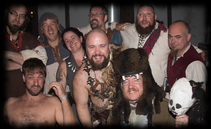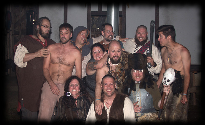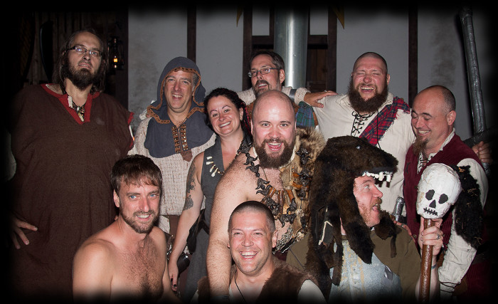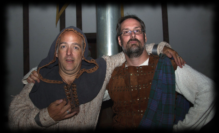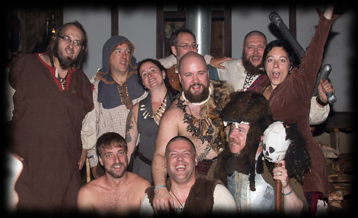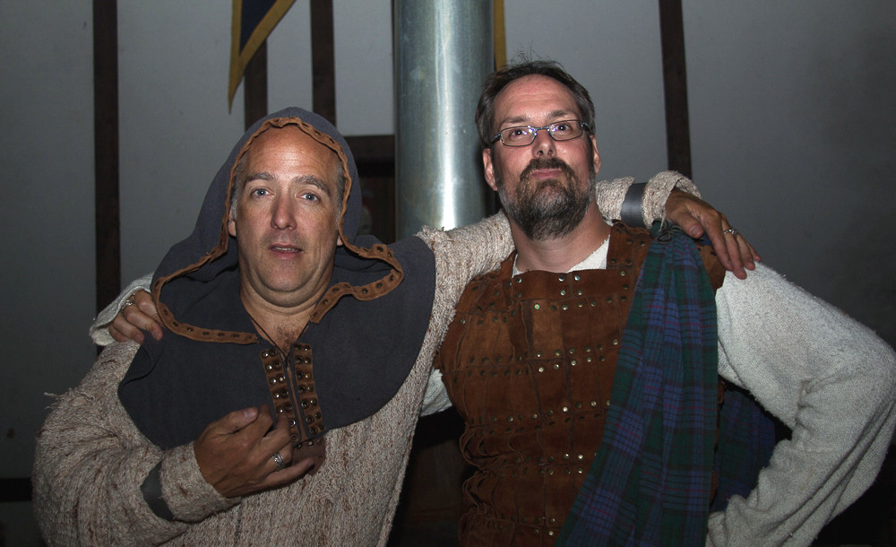 Les fiers Matémorh et Glahul, tous deux à leur 20e présence à Bicolline. Ils sont vêtus de leurs attifures d'origine. Absents sur l'enluminure mais présents à la 1ière et à la 20e édition de Bicolline: Gorghor, Robert (à l'époque connu comme Vordrak), Don Miguel et Skeg (6 participants sur 7 de 996 étaient présents au 20e).
