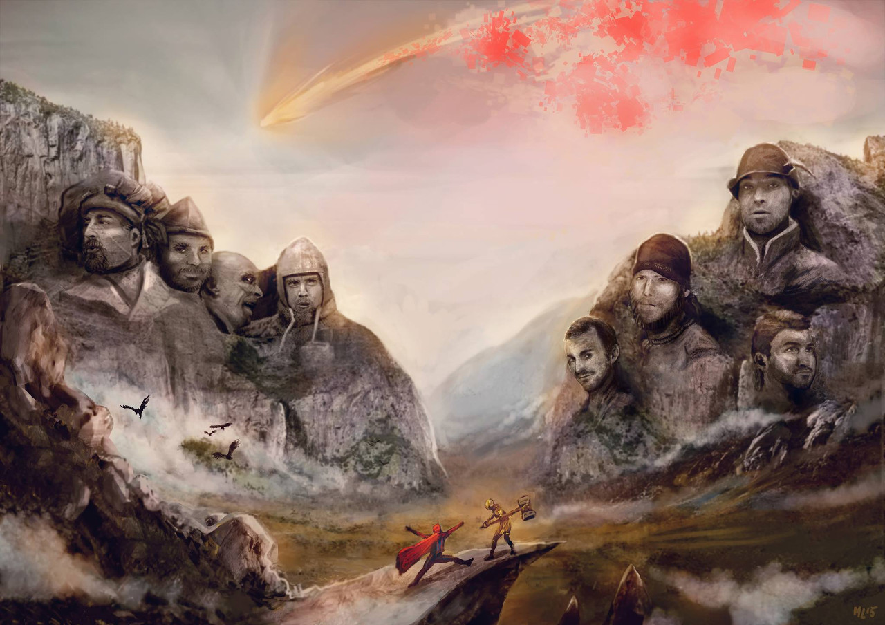 Dans cette représentation du Mont Reiksmore, on peut admirer à l'avant Kapitaine Empire combattant Gunnulf de la Meute. Dans le ciel, on découvre la Comète de Butasard emmènant dans son sillage les graines de la destruction.