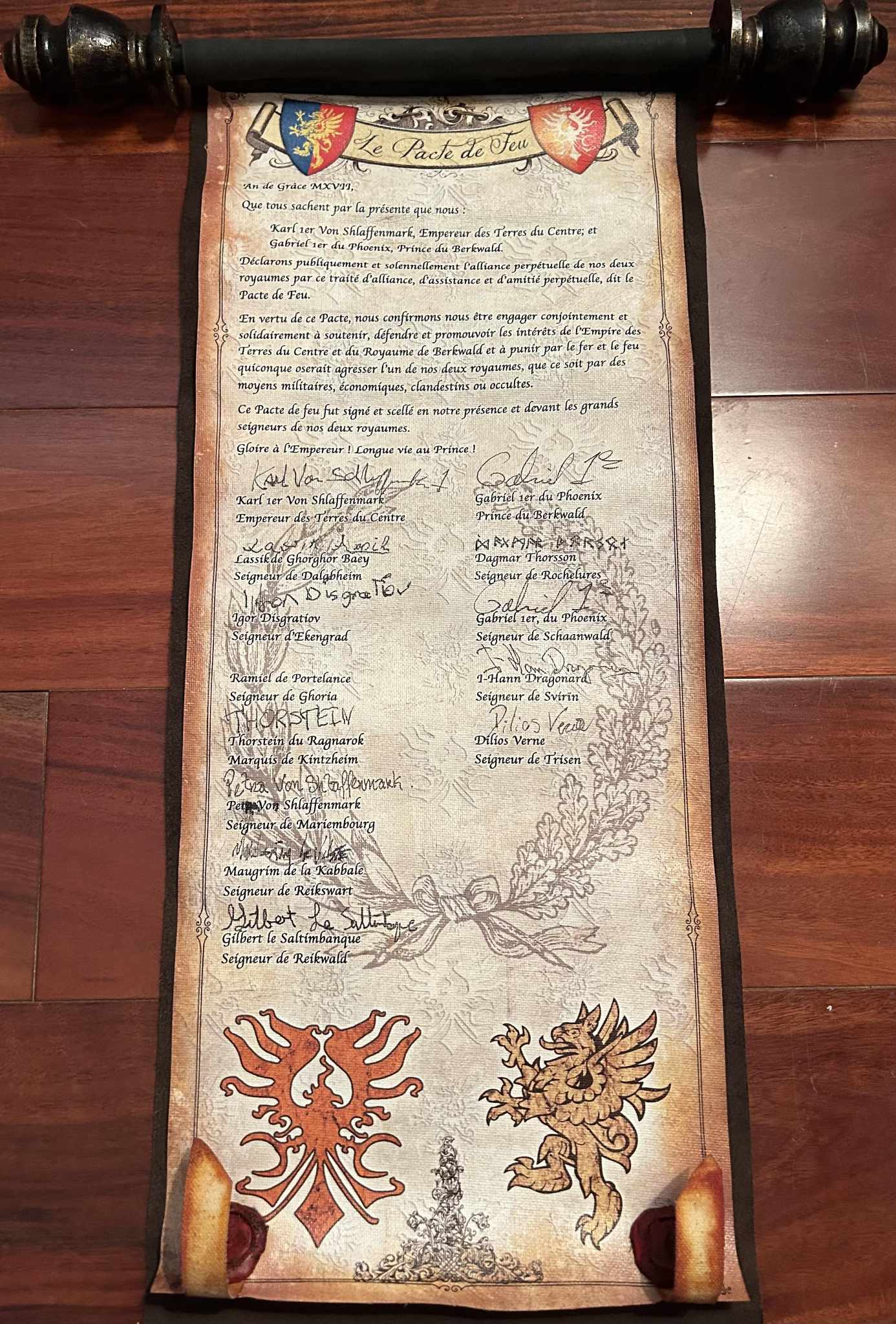 Ce Pacte de feu fut signé et scellé en notre présence et devant les grands seigneurs de nos deux royaumes.